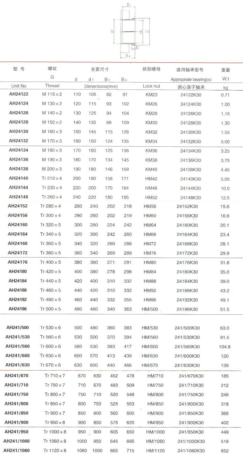 Withdrawal sleeve AH241 series